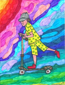 Vite, vite, je la sors du sac. Un pied sur la planche, l’autre pour m’élancer… C’est partiii !