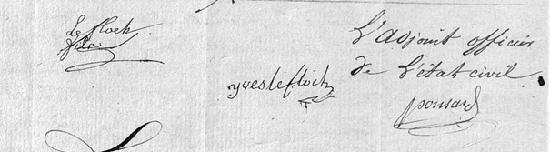 Pourtant, au fil de la vie de Jeanne Louise Yvonne Cécilia Le Floc’h, les choses évoluent. Ses deux filles, Jeanne Catherine et Marie Anne Taniou, en témoignent. La première, née trop tôt, n’a probablement pas été scolarisée et ne signe pas son acte de mariage. La seconde, née onze ans plus tard, écrit son nom avec application au bas du document du 18 octobre 1874. Ironie de l’histoire : cette fois, c’est le marié qui ne sait pas signer.
